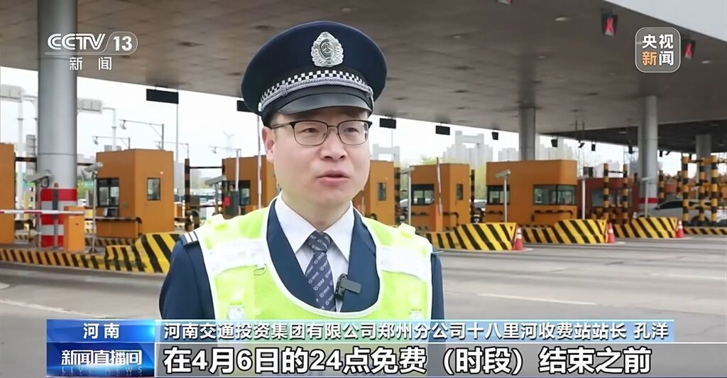 河南交通投资集团有限公司郑州分公司十八里河收费站站长 孔洋:在4月6日的24点免费时段结束之前,一定要合理安排自己的下收费站时间。最好能提前10到20分钟,在就近的收费站下高速,享受这个24点之前的免费路段,然后再重新上高速。