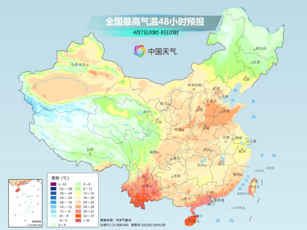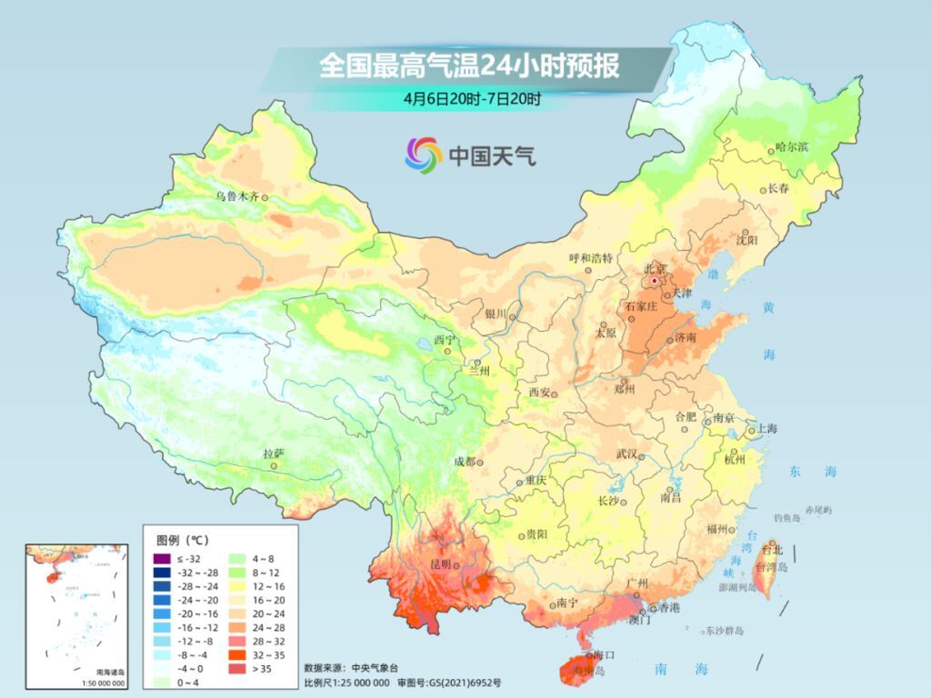 明天,北方多地暖热继续,华北、黄淮、东北中南部最高气温仍可达到20℃以上。其中,河北中南部、北京、天津、山东北部、山西南部、辽宁西部等地还会达到25℃以上。