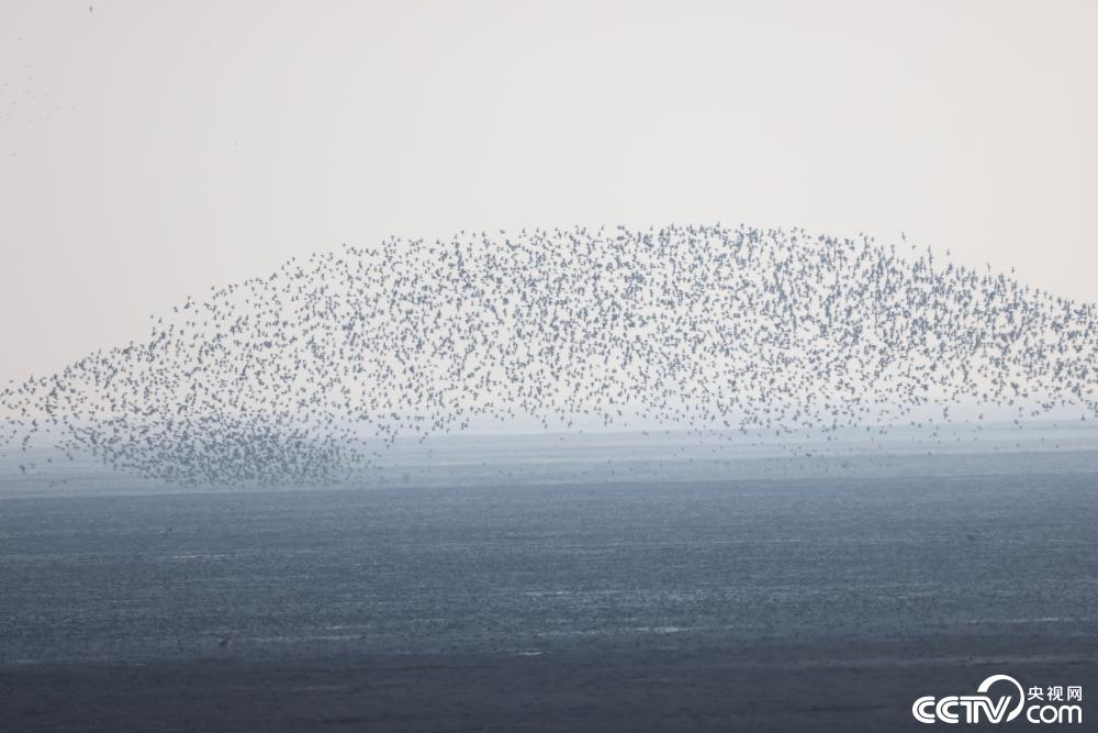 辽宁丹东:候鸟迁徙形成壮观“鸟浪”。