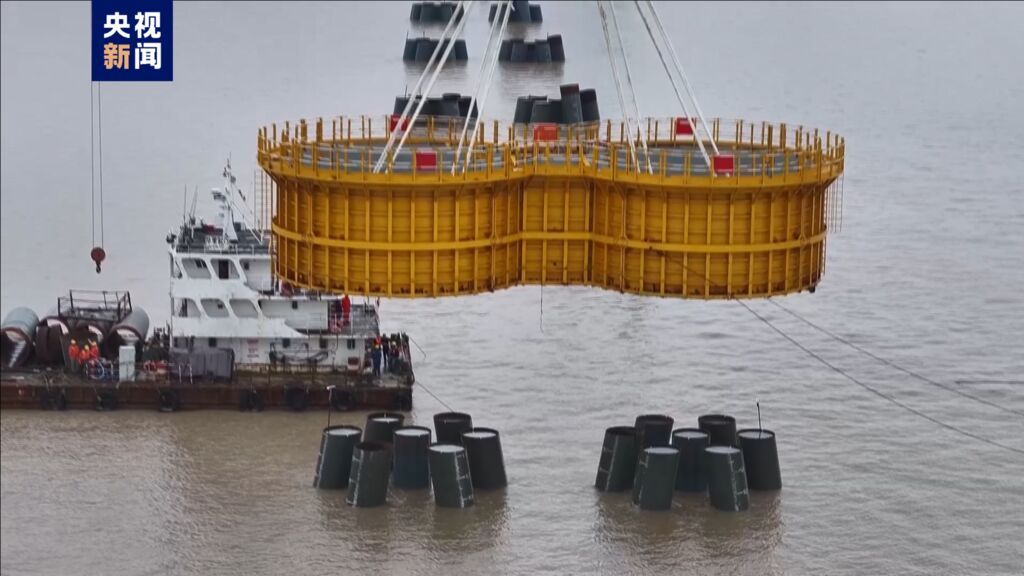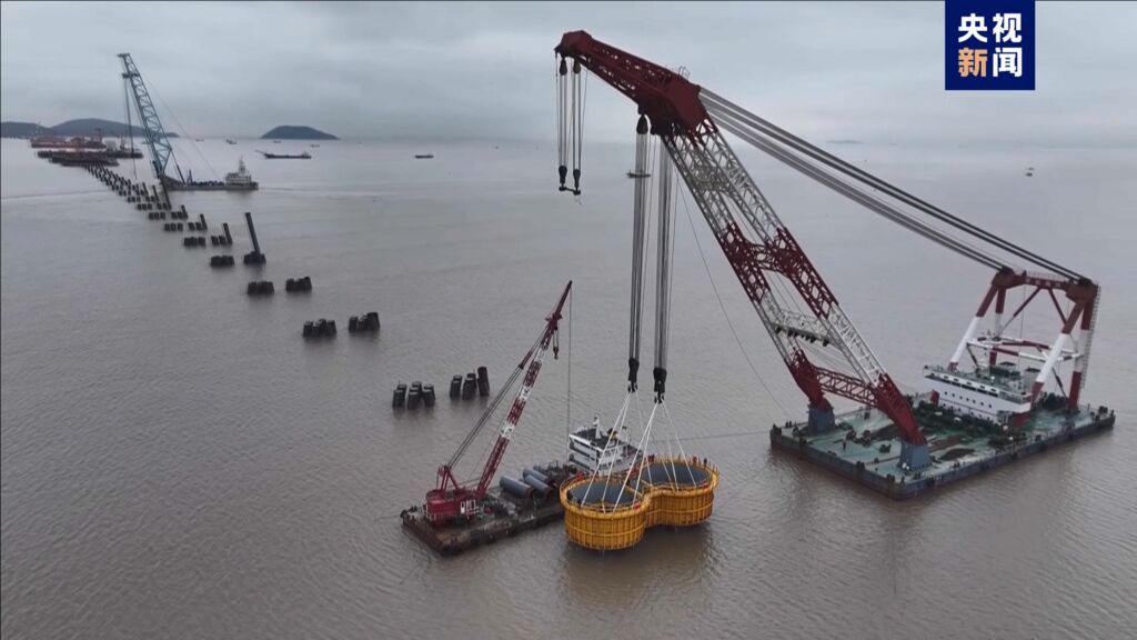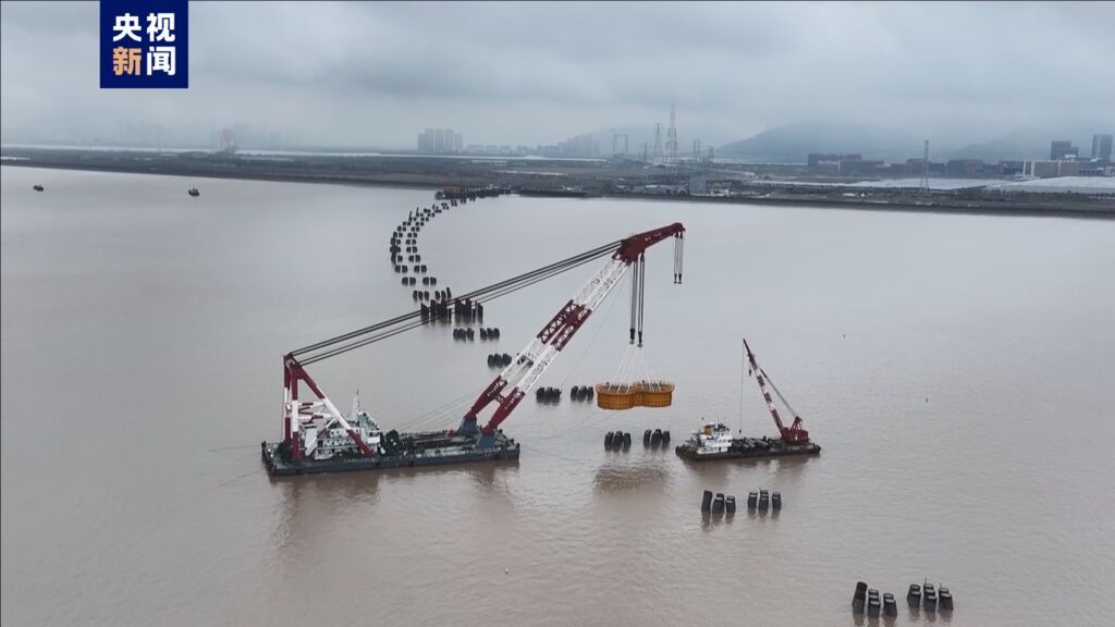 青龙门特大桥由中国铁建大桥工程局、中国铁建港航局联合承建,是世界级跨海连岛工程——宁波舟山港六横公路大桥二期关键控制性工程,双主跨756米横越青龙门水道,连接舟山佛渡岛和宁波梅山岛两座岛屿,是目前世界最大跨度三塔钢箱梁斜拉桥。(总台记者 杜金明 方良)