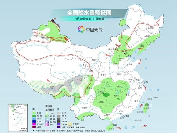 今天(4月10日)夜间开始,随着暖湿气流再度加强,南方地区将迎来新一轮较强降水过程,局地雨势强劲,并伴有强对流天气。此外,未来三天,新疆北部也会遭遇雨雪天气的频繁打扰。而在北方其他地方,随着冷空气影响收尾,今天起气温将陆续反弹,12日前后又将迎来回暖高潮。