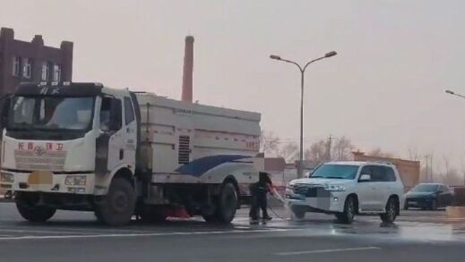 ·长春一环卫车停在路中间给私家车洗车?城管和交警部门回应:正在调查中。