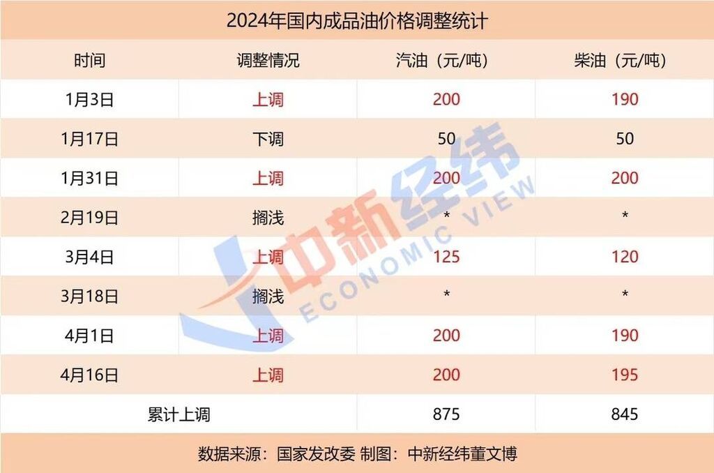 据中新经纬梳理,今年以来,国内成品油调价已呈现“五涨一跌两搁浅”格局,汽、柴油每吨分别累计涨875元、845元。若本轮调价落地,年内成品油调价将为“五涨两跌两搁浅”。