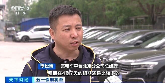 某租车平台北京分公司总经理 李松诗:租期在4到7天的比较多,假期的前两三天可能会有大批量订单,建议大家提前把自己的行程规划一下。
