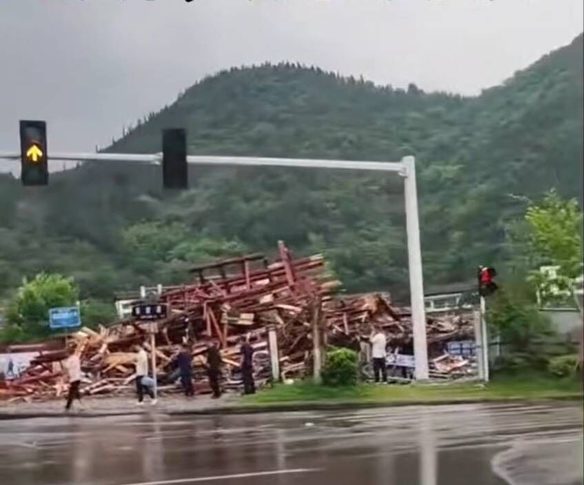 4月29日下午,多名网友发视频称,贵州省黔东南州凯里市一鼓楼倒塌。据发视频的网友介绍,该鼓楼位于凯里畅达广场对面。视频显示,原本漂亮的鼓楼已变成废墟,木质建筑材料散落一地,靠马路的一侧已拉起警戒线。多名网友称当时有人在鼓楼下躲雨。