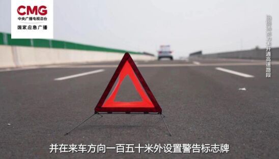 开启危险报警闪光灯,将车辆移到应急车道,靠边停车。车辆无法移动时,从路边走到车后150米处,摆放三角警告标志牌。