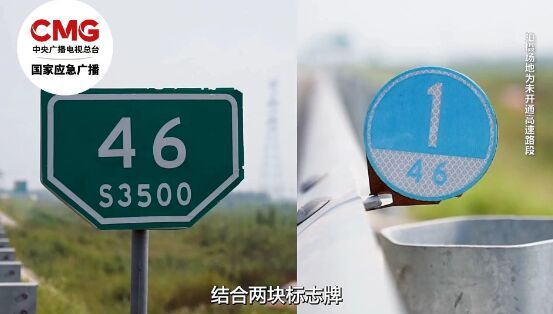 结合两块标志牌可以准确定位当前位置是S3500高速46公里100米。报警求助时,如果分不清上行还是下行,只要说出从哪里上的高速去往哪里就可以。