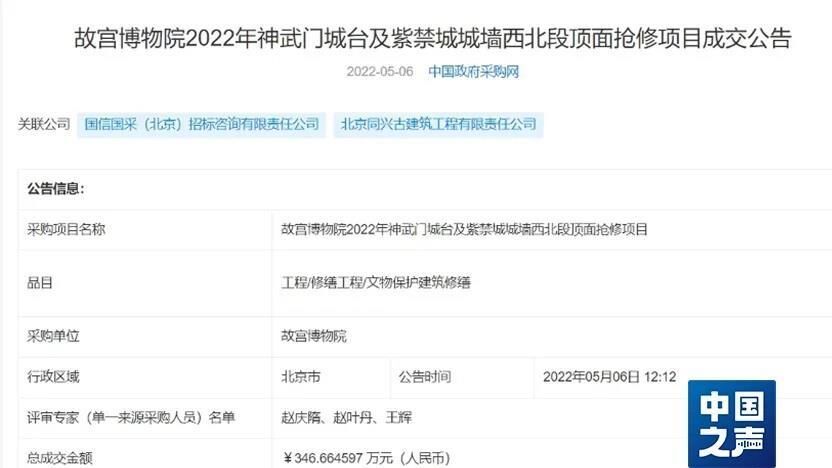 记者查询招标信息发现,2023年8月,河南政府采购网发布“河南大学河南留学欧美预备学校旧址大礼堂修缮工程项目-竞争性磋商公告” 。9月,北京同兴古建筑工程有限责任公司以4356000元中标该修缮工程项目。公司法定代表人徐长林接受中国之声记者独家采访时表示,他们公司成立于1999年,还曾中标过故宫博物院、清华大学、北京大学部分建筑的修缮工作。