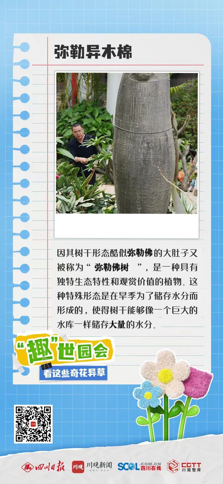 长着“大肚子”的弥勒异木棉,挂着“葡萄”的嘉宝果,花果开在“老茎”上的火烧花,“妖艳毒花”木本曼陀罗,还有热带雨林的奇观小叶榕……来自全球各地的“神奇植物”在这里奇妙相遇。