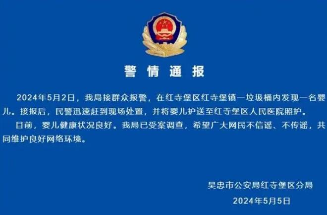 ·宁夏吴忠一垃圾桶内发现弃婴,警方通报:已受案调查。