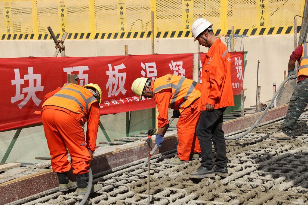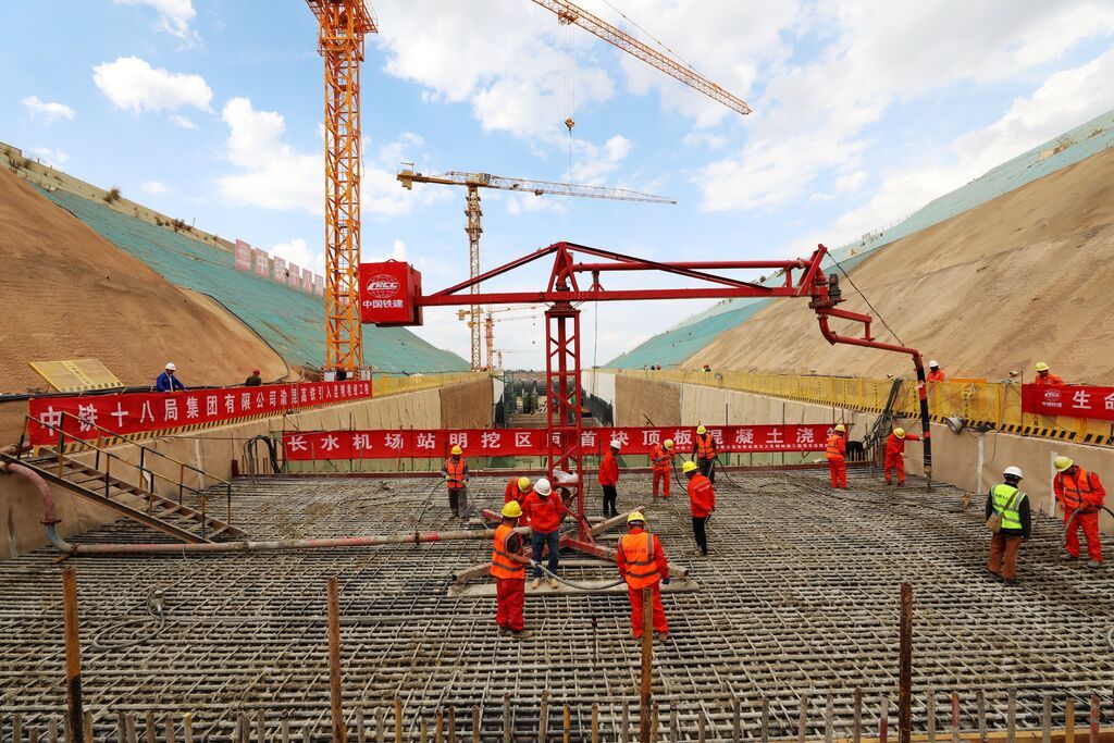 记者从中国铁路昆明局集团有限公司(下称“国铁昆明局”)了解到,5月7日凌晨,经过建设者近40个小时的连续浇筑作业,渝昆高铁长水机场站明挖区间首块顶板顺利完成浇筑,这标志着车站明挖区间正式进入主体结构施工阶段,为长水机场隧道进口贯通,以及渝昆高铁早日建成通车奠定了坚实基础。