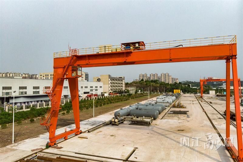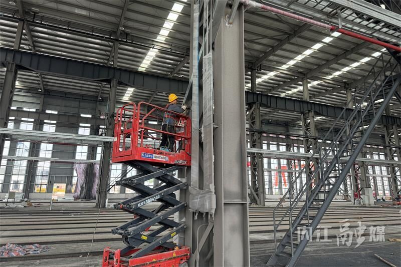 5月7日,内江石油容器厂整体搬迁项目现场,施工人员正操作高空作业车辆进行电缆槽的安装。办公楼、实验楼已建设完工,材料及成品堆场已存放不少石油容器,吊装设备也已安装完毕。目前,项目已进入收尾阶段,正全力冲刺“终点线”。