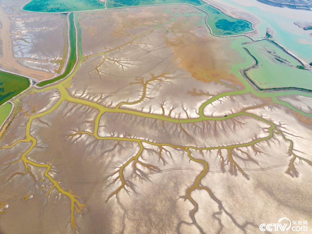 2024年5月7日,江苏盐城黄海湿地出现“潮汐树” 景观。