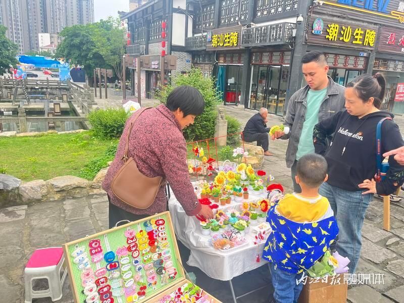 走进南关石牌坊,特色小吃、非物质文化遗产吹糖人、各色餐饮、精美的手工编织品点燃了众多市民游客的消费热情。
