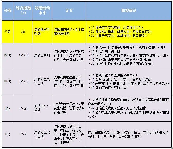 流感指数分级标准表