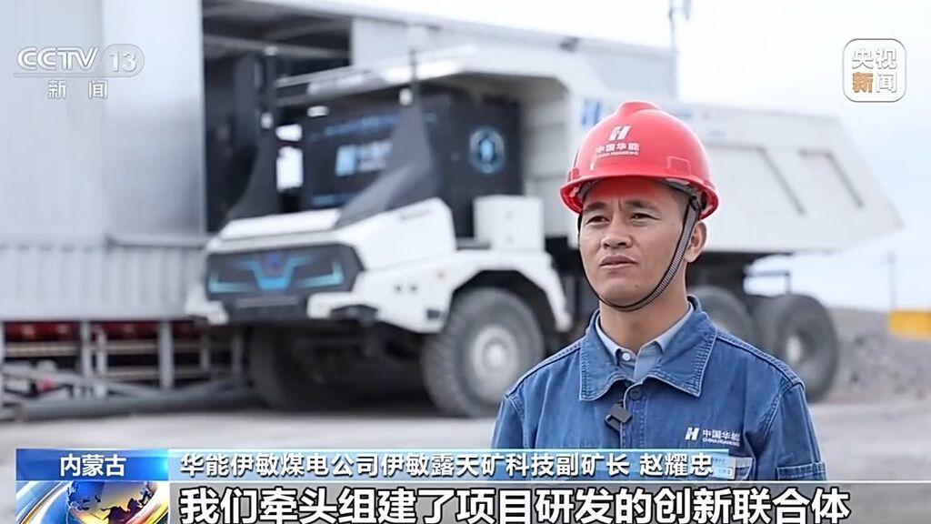 华能伊敏煤电公司伊敏露天矿科技副矿长 赵耀忠:我们牵头组建了项目研发的创新联合体,通过5G技术,实现了取消驾驶室,无人驾驶卡车的常态化作业。在做到智能换电的同时,与传统人工驾驶模式相比,可以减少所有司机岗位需求。