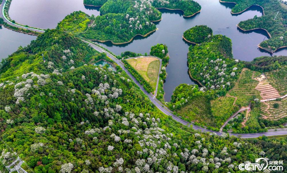 初夏时节,浙江杭州,千岛湖畔山坡上大片的桐花绽放,形成了五月“十里飞雪”的景观,美不胜收。