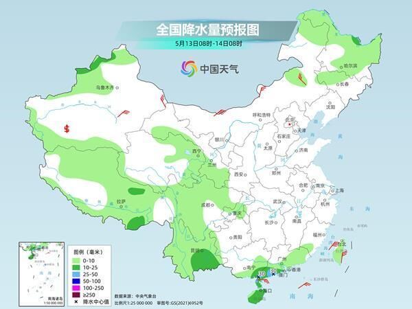 后天,内蒙古东北部、东北地区中北部、新疆南疆盆地和北部、西藏北部和东部、西北地区中部、西南地区大部、华南中南部、台湾岛等地部分地区有小到中雨,其中,广东南部沿海等地部分地区有大雨(25~30毫米)。