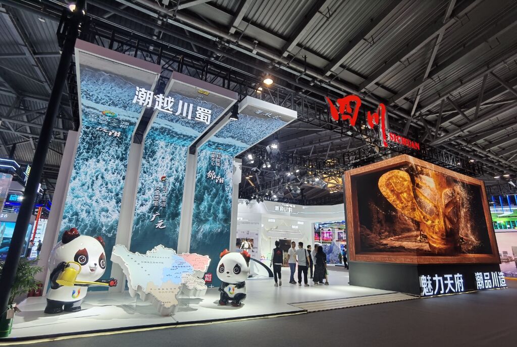 一到地方展区,远远就看到三个竖长、弯折的超大LED屏形成一个醒目的“川”字。“川”字屏前,两只大熊猫形象的“吉祥物”共同托举起四川地图——5月10日上午,2024年中国品牌日系列活动正式启动。四川在线下活动举办地上海世博展览馆,以“魅力天府 潮品川造”为主题,刮起最炫“天府风”。