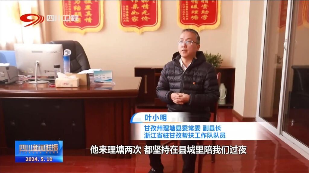 翻开地图可以看到,浙江对口帮扶的68个县,占四川全省面积四分之三,很多地方都在条件艰苦的高原和山区。2021年,杭州市钱塘区的工作队来到平均海拔4000米以上的甘孜州理塘县,开展对口支援。因两地名字都带“塘”,大家亲切地称之为“塘塘合作”。而这份“甜蜜”牵手的背后,是浙江工作队克服高原缺氧的“艰苦”。挂念这方土地的乡亲和浙江帮扶队员,王峻曾来到这里两次。
