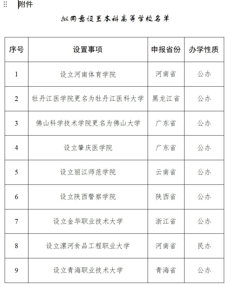 ·教育部:拟同意设置佛山大学等9所本科高校。