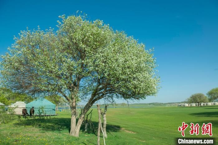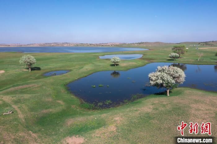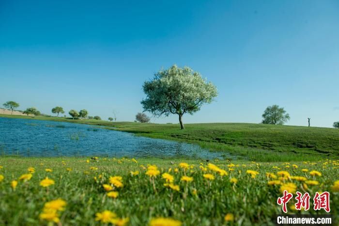 小满初盈,万物复苏。摄影爱好者在内蒙古自治区锡林郭勒盟正蓝旗拍摄浑善达克沙地腹地的醉人美景。
