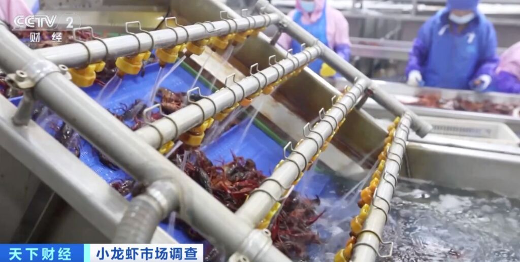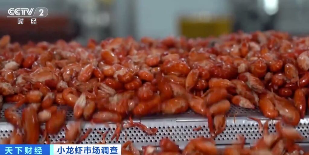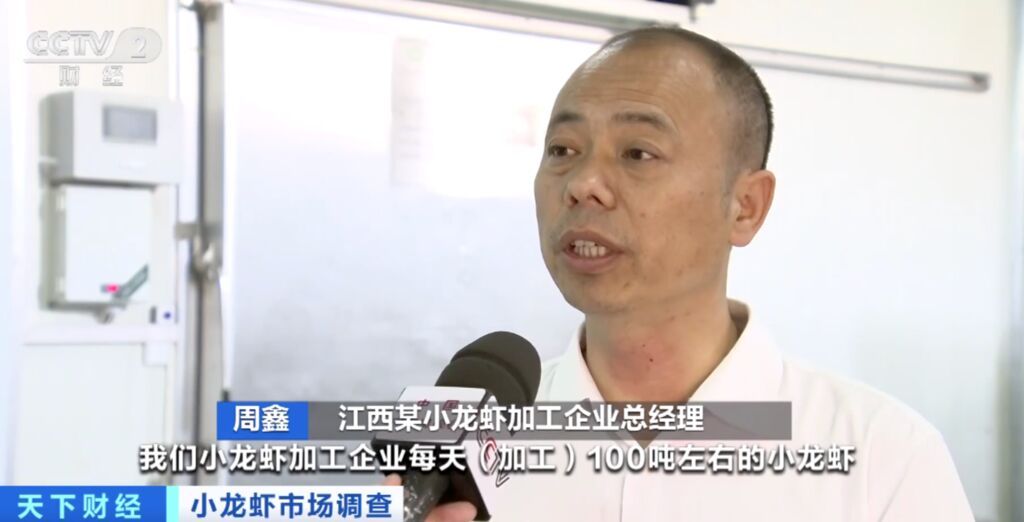 江西某小龙虾加工企业总经理 周鑫:我们小龙虾加工企业每天加工100吨左右的小龙虾,卖鲜活小龙虾的价值可以提升40%到60%。冷库和加工厂,可以实现为老百姓养殖小龙虾收益兜底的作用。