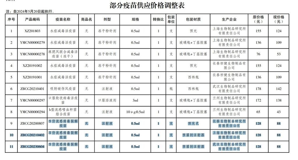 实际上,国产疫苗的“内卷”并不只是二价宫颈癌疫苗一款产品的命运。据江苏省公共资源交易中心5月20日发布的调价通知,国药集团下属的长春所、武汉所、上海所四价流感病毒裂解疫苗中标价格从128元/支降到88元/支,降幅超过30%。