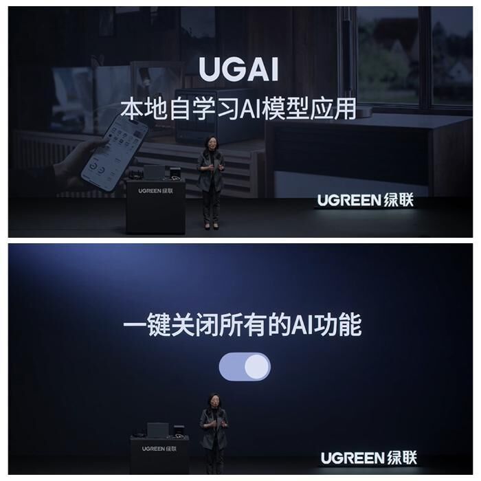 但对于AI技术,也有部分用户抱着更加谨慎的态度,担心AI的应用会泄露个人的数据。关于这一点,绿联团队显然也进行了“以数据安全为中心”的深度思考。绿联NAS私有云产品总监魏婷在发布会上介绍,UGAI模型是完全在不联网的情况下进行训练的,不会将用户的相片上传到云端。另外,绿联还提供了一键关闭所有AI功能的选项,让用户拥有是否使用AI功能的决定权。