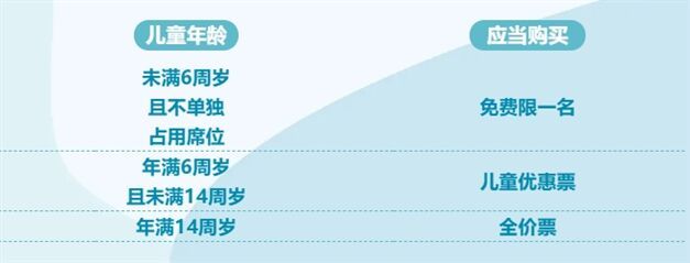 2. 儿童优惠票的乘车日期、车次及席别应与同行成年人所持车票相同,到站不得远于成年人车票的到站。