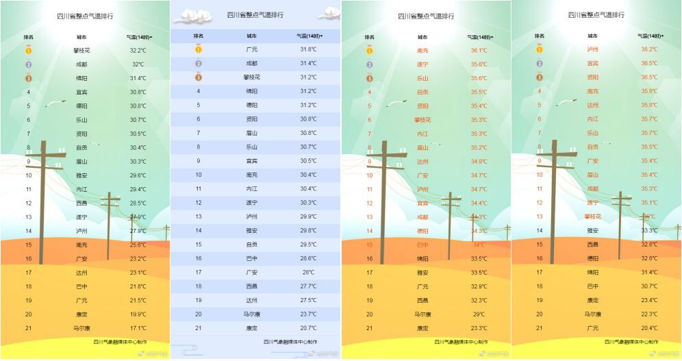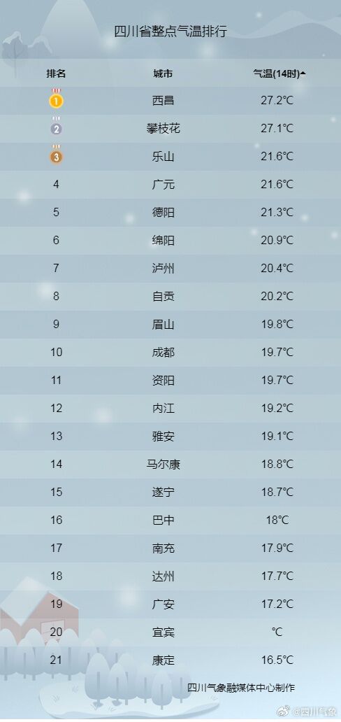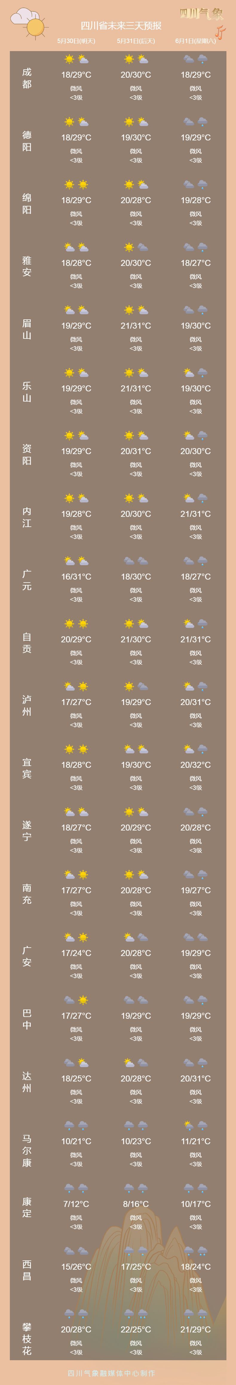 直到5月28日,这场席卷全省的高温终于偃旗息鼓。据四川省气象台观测,今天14时全省各城市气温均不足28℃,盆地城市普遍在17~22℃之间,体感舒适。
