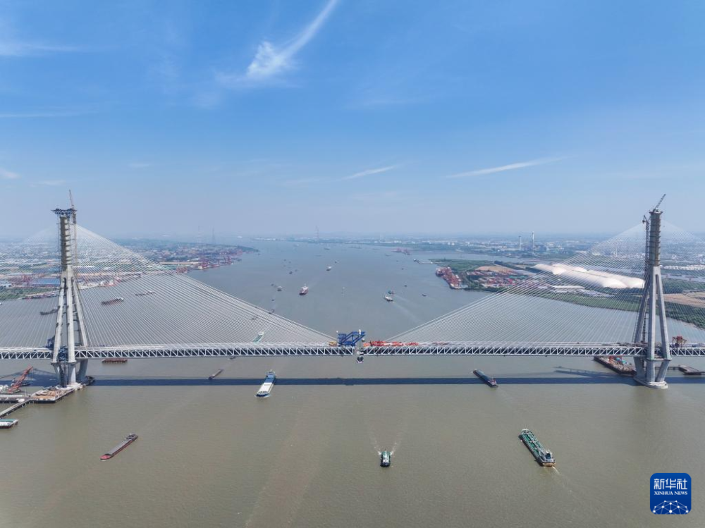 5月29日,常泰长江大桥主航道桥最后一节钢桁梁——合龙段钢桁梁顺利吊装到位,拉开主桥合龙的序幕,预计6月上旬完成合龙,实现全桥贯通。