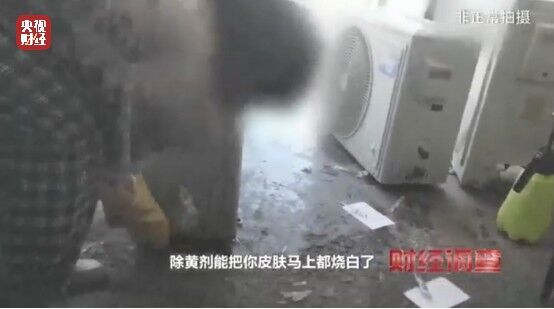 商家告诉记者,所谓的“漂”,就是用各种化学清洁剂对旧空调进行清洗,可以将颜色发黄的旧空调漂白到看起来像新机器的程度。