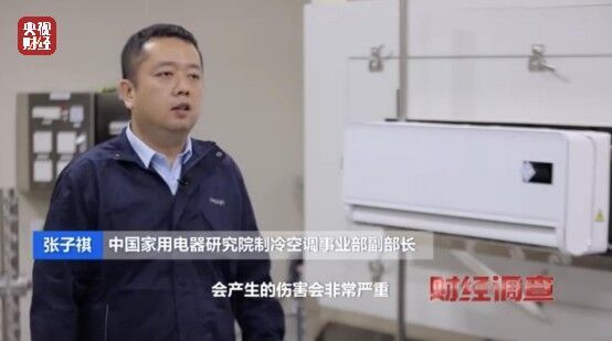 中国家用电器研究院制冷空调事业部副部长 张子祺:如果我们长期在这种环境下闻这些味道,对呼吸道产生的伤害会非常严重,有害物质刺激到中枢神经系统。而超期服役的空调在能源效率上可能要降低50%。