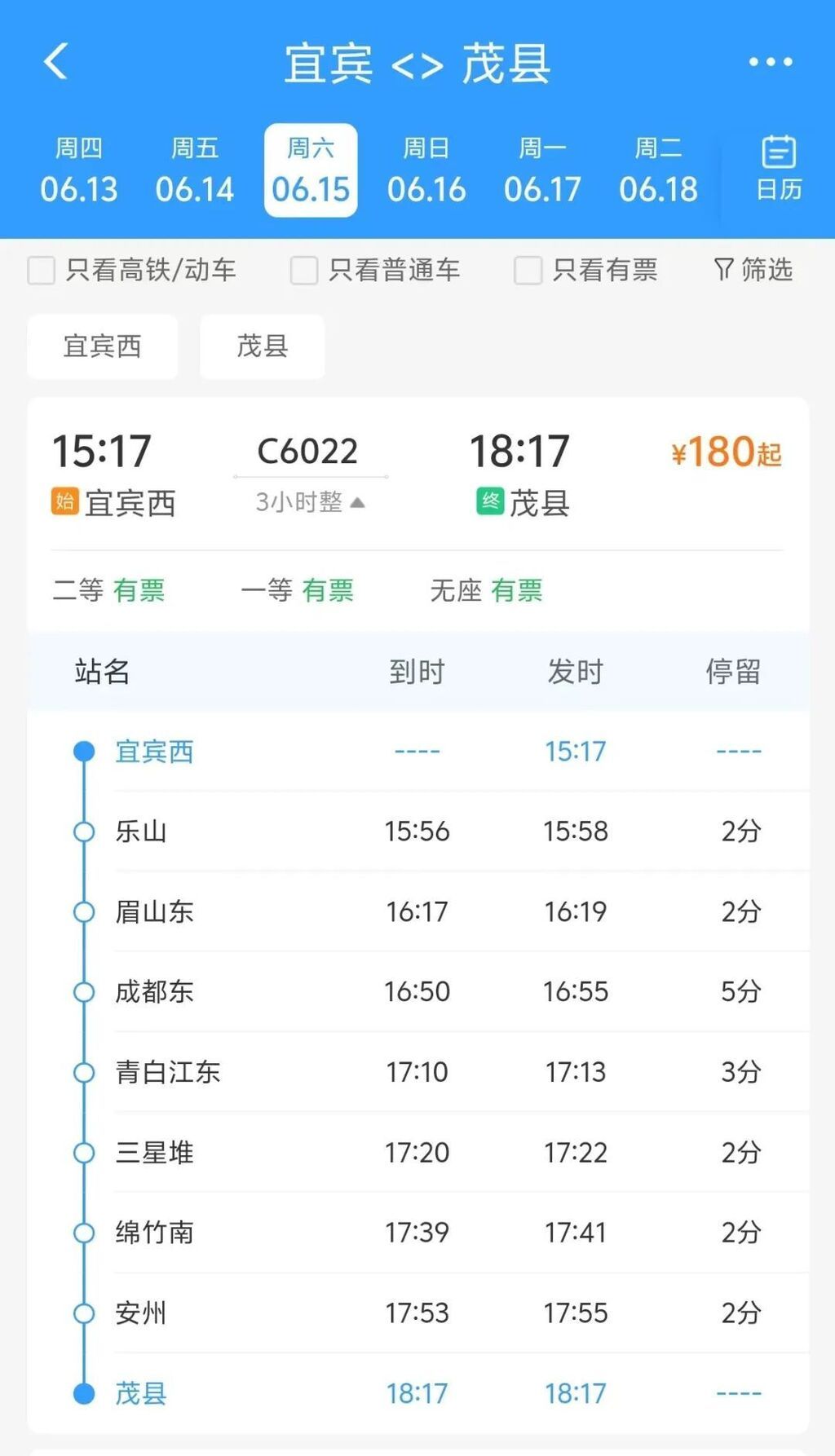 宜宾西也将始发至茂县的