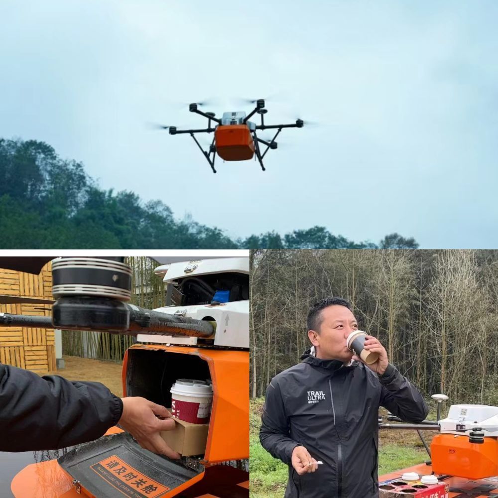 这里还进行了户外场景的无人机物流探索。周小明说:“手机下单,无人机送咖啡、送火锅底料、送锅盔,覆盖了户外露营地、民宿区、景点等30余个点位,下单游客很多,赏花季每天要飞100余架次。”