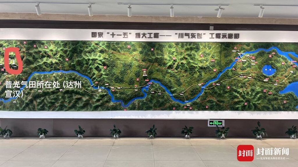 随后,讲解员抬手指向展馆门口示意图上黄色标志处,那便是普光气田的确切位置,四川达州市宣汉县。