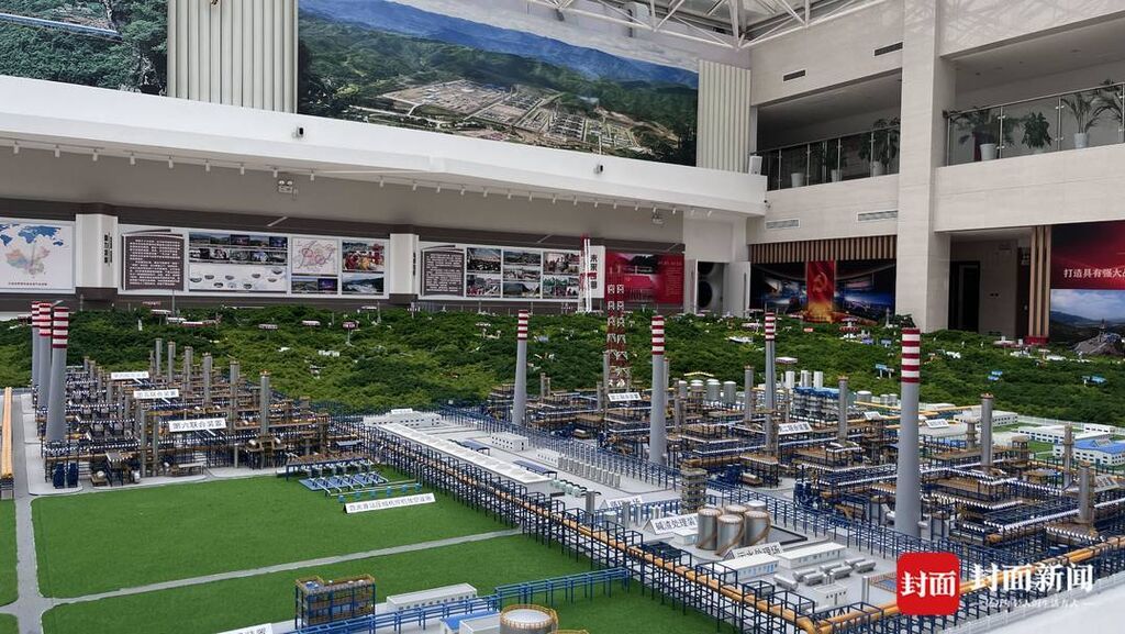 净化厂究竟是怎样的面貌?在国内首个以高含硫气田为主题的科技展览馆内,大家对于净化厂的想象被巧妙地缩小并还原,通过三维模拟沙盘的形式具象地展现出来。