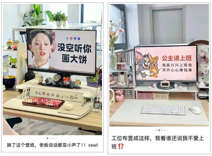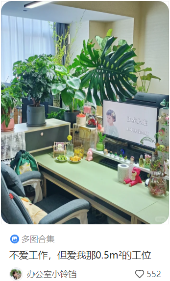 打工人缓解焦虑的方式有很多,比如和上班搭子带薪聊天、中午吃一顿美食,利用“公园20分钟效应”,散去身上的“班味儿”等,如今流行的爆改工位也是其中之一。