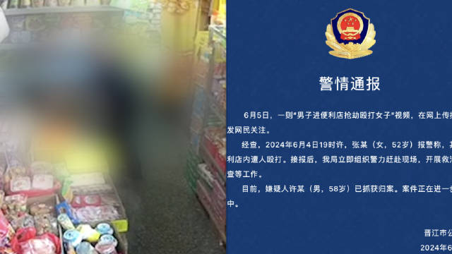 ·便利店女店主遭男子持续殴打,福建晋江警方:已抓获58岁嫌疑人。