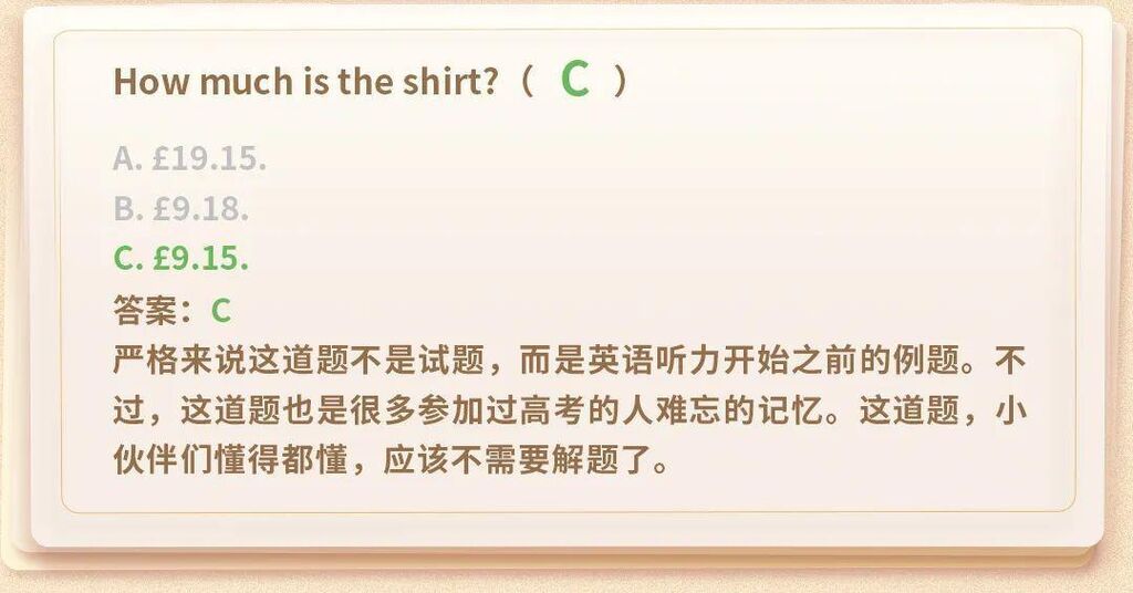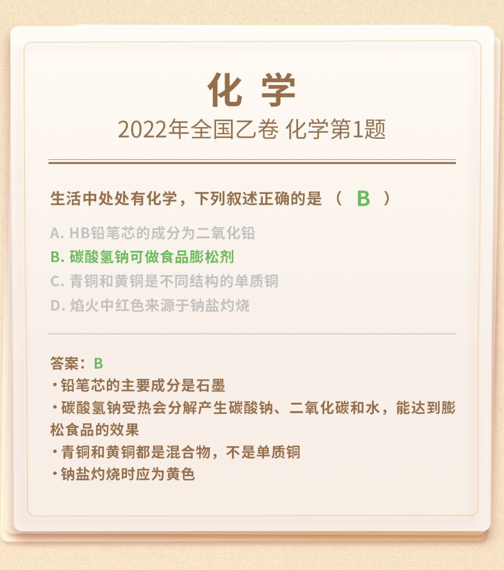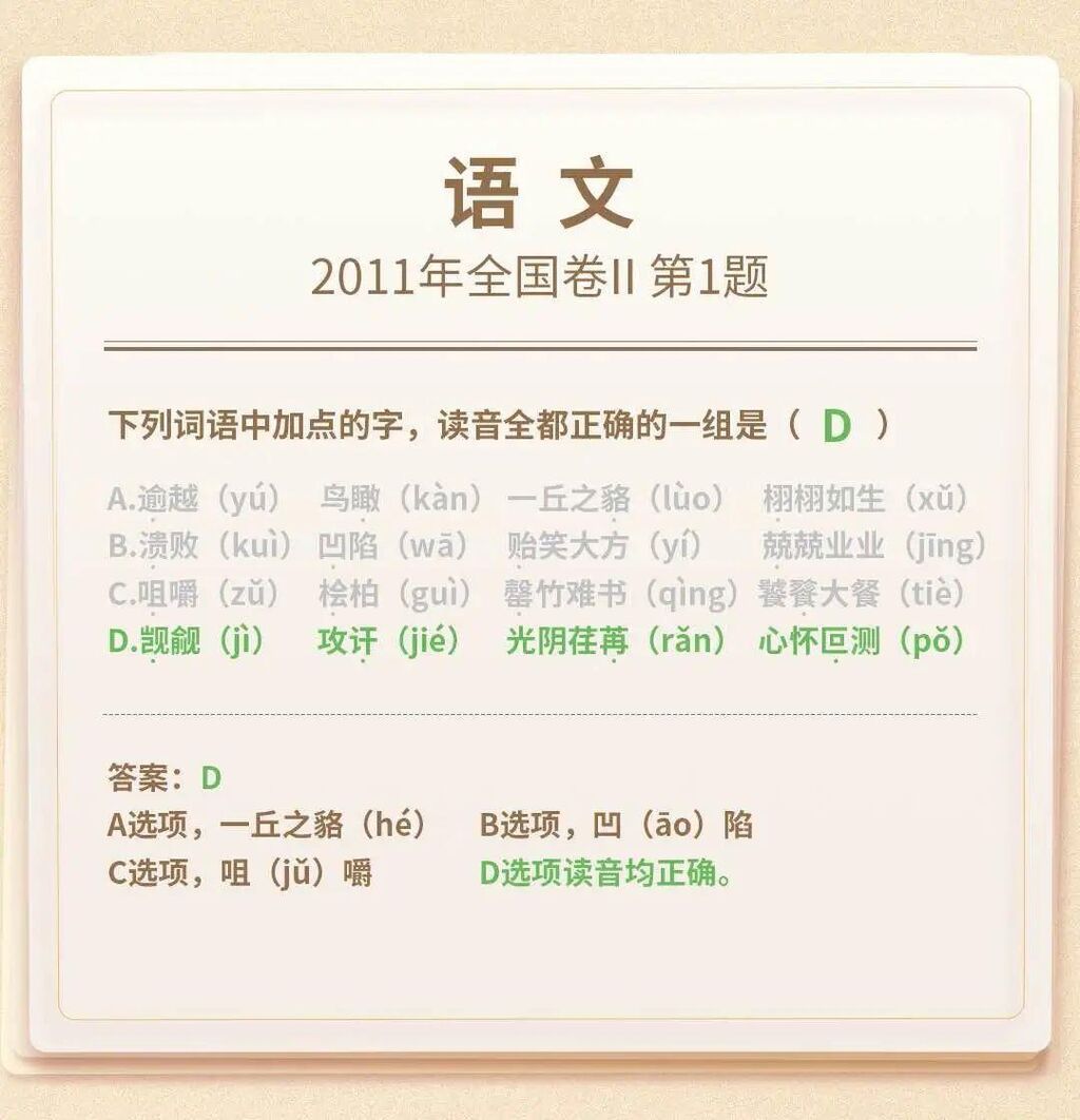 考场之外的你,是否还能记起当年做过的高考真题?都说高考试卷的第一题属于“Easy模式”,不仅简单,也能帮助考生快速进入考试状态。今天,小编为你准备了9门科目的“高考第一题”。重温青春记忆和知识的同时,也来一起看看,当年几乎稳稳拿下的题,如今还会吗?