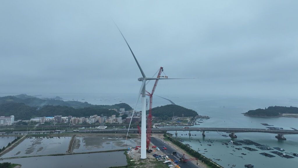 据悉,该风电机组风轮直径达260米,叶片扫风面积超5.3万平方米,相当于7.4个标准足球场的大小。机组每转一圈可产生38度电,单台机组年平均发电量高达7200万千瓦时,足以满足约3.6万户家庭一年的用电需求,且每年还可节约标准煤2.2万余吨,减少二氧化碳排放5.9万余吨。