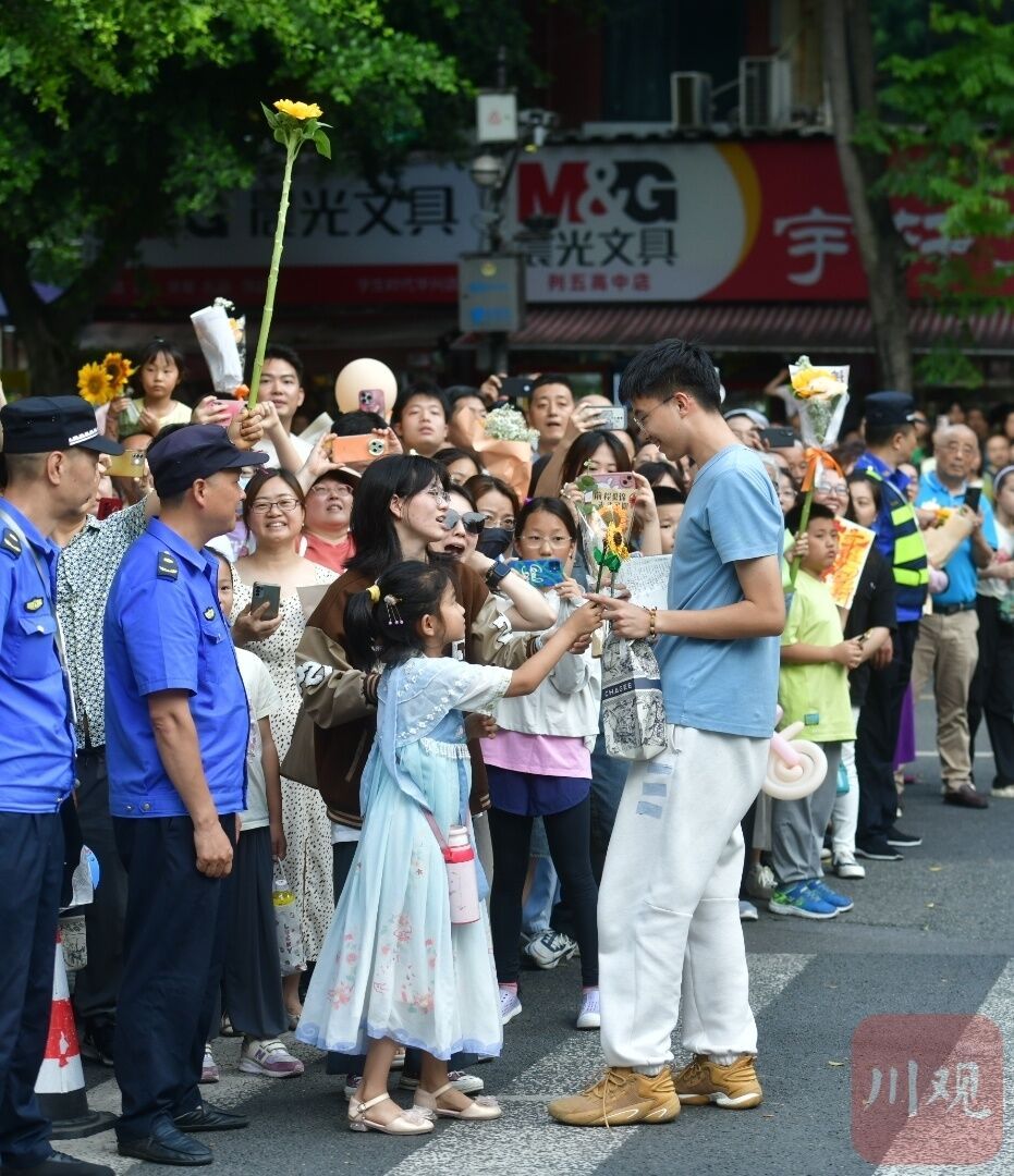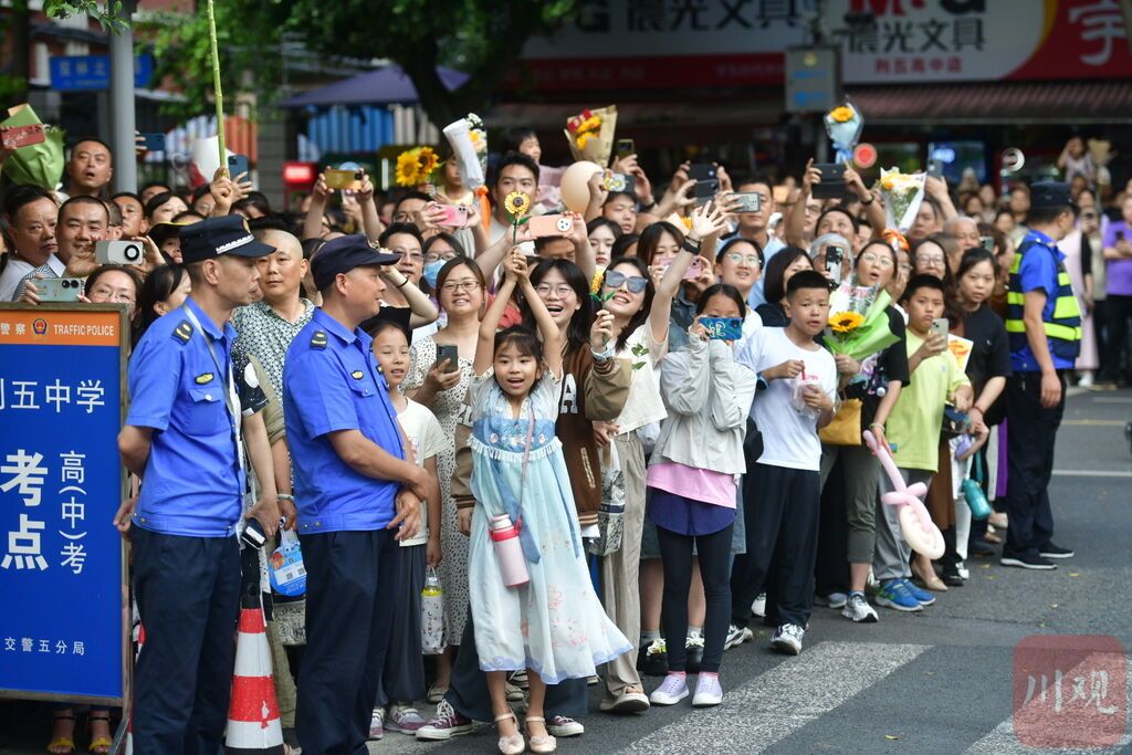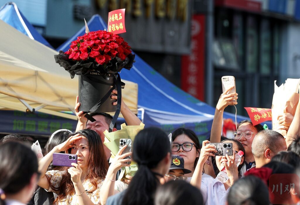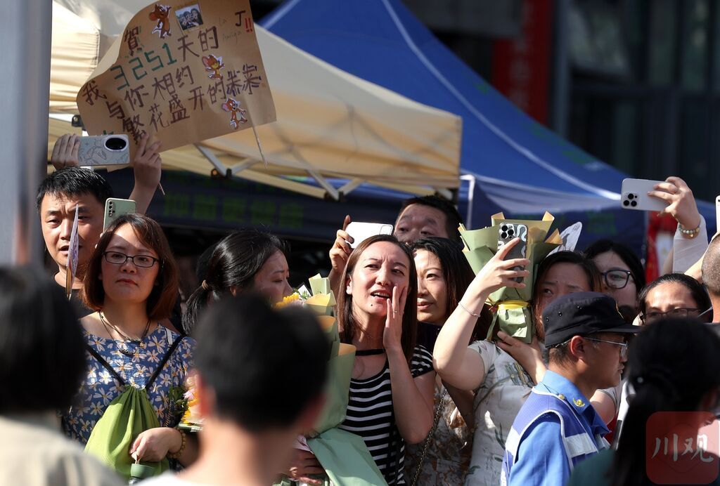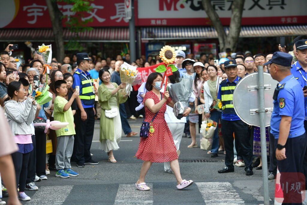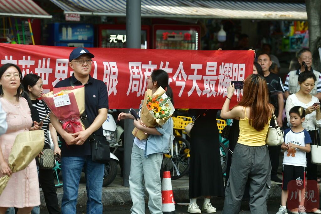 6月8日下午5时,随着最后一科英语考试结束的铃声响起,四川2024年高考结束。记者在成都市列五中学、成都第八中学考点看到,不少考生家长和家人手捧花束在考场外迎接考生,仪式感满满。