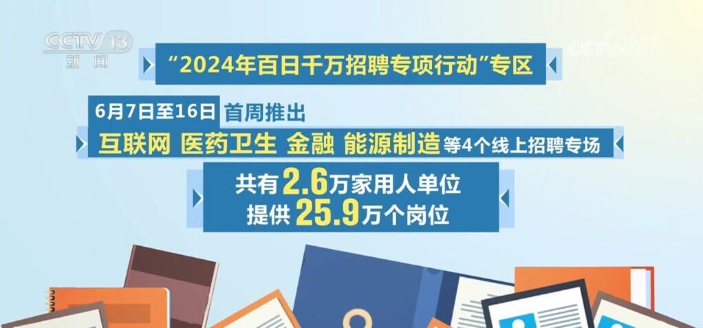 6月7日至16日,“百日千万专项招聘行动”首周推出互联网、医药卫生、金融、能源制造等4个线上招聘专场,共有2.6万家用人单位提供25.9万个岗位。