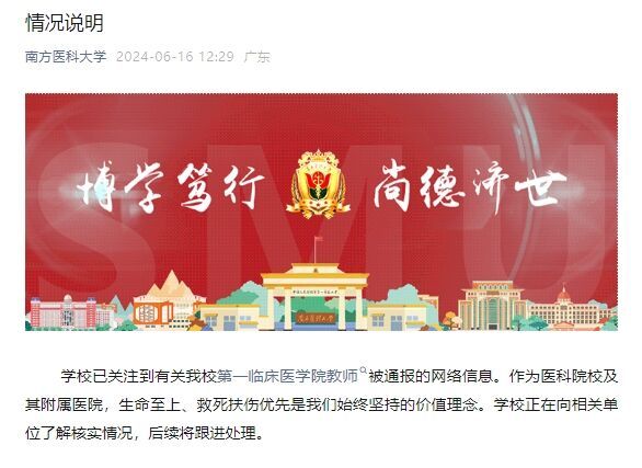 被推向舆论风口浪尖的南方医科大学回应称,正在向相关单位了解核实情况,后续将跟进处理。所谓“相关单位”,应该是作出处分决定的南方医科大学第一临床医学院。