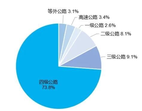年末全国国道里程38.40万公里,省道里程40.41万公里。农村公路里程459.86万公里,其中县道里程69.67万公里、乡道里程124.28万公里、村道里程265.91万公里。