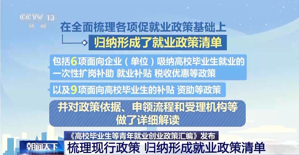在全面梳理各项促就业政策基础上,归纳形成了就业政策清单,包括6项面向企业(单位)吸纳高校毕业生就业的一次性扩岗补助、就业补贴、税收优惠等政策,以及9项面向高校毕业生的补贴、资助等政策,并对政策依据、申领流程和受理机构等做了详细解读,力求让广大高校毕业生和用人单位更加便捷查询政策、更加准确理解政策、更加全面适用政策,推动政策直达快享。