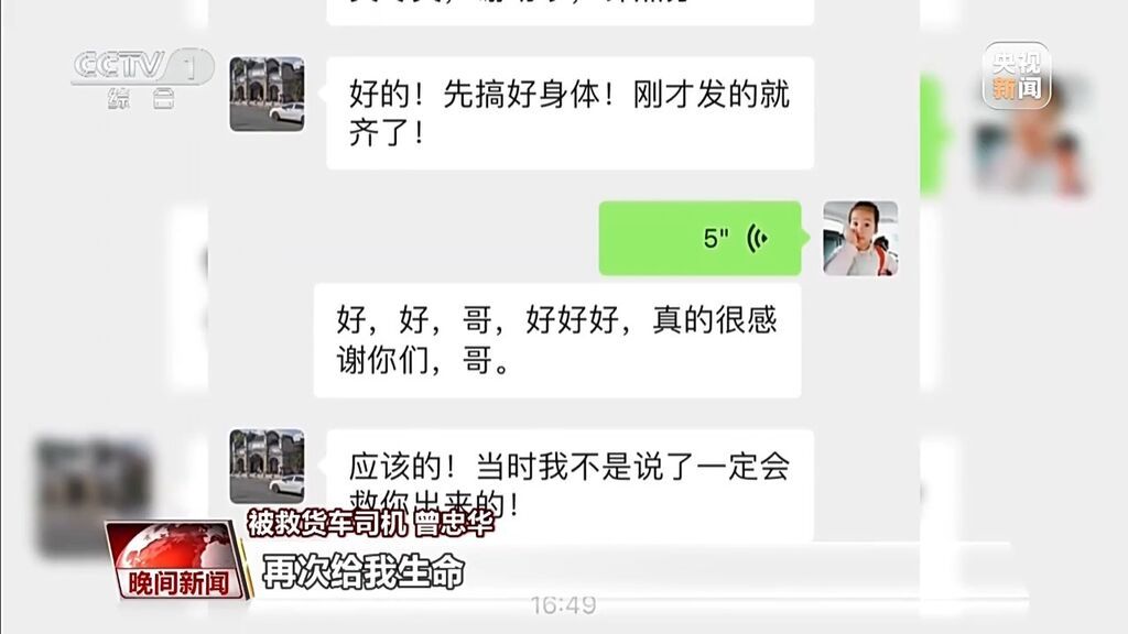 被救货车司机 曾忠华:被他们救出来第一时间我跟他们说,我说你们都是我的再生父母,再次给我生命。以后我也要做一个这样的人,把这个好的精神继续传下去。