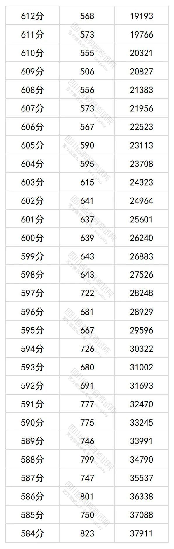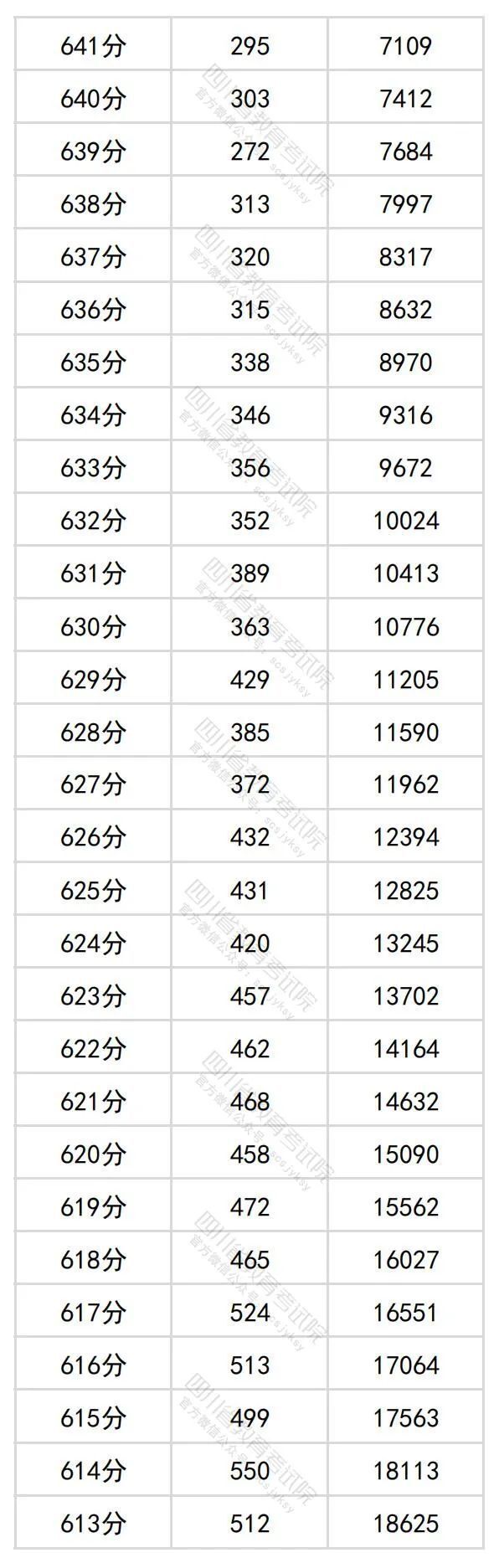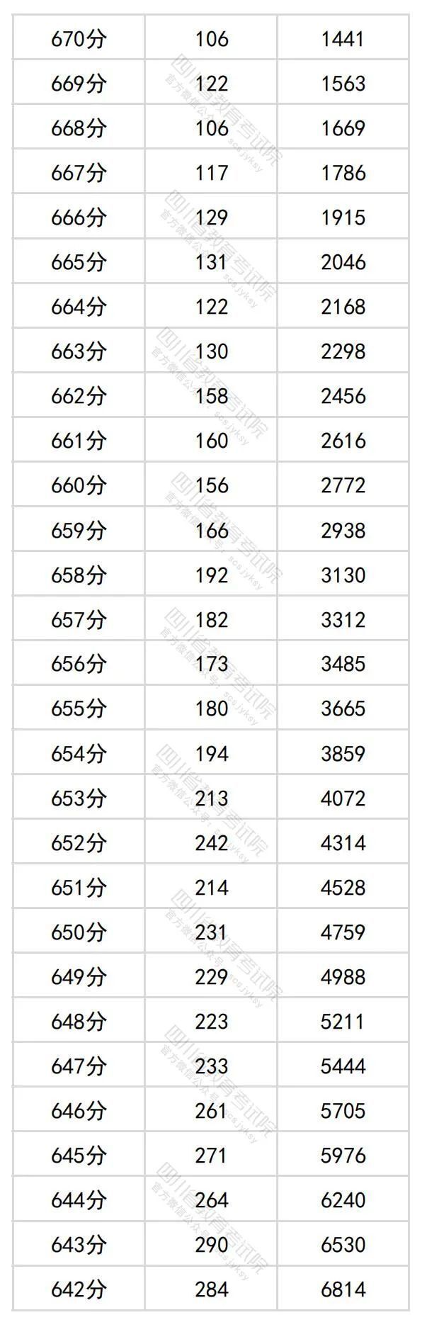 6月23日晚,四川省教育考试院公布四川省2024年普通高考理科成绩分段统计表。