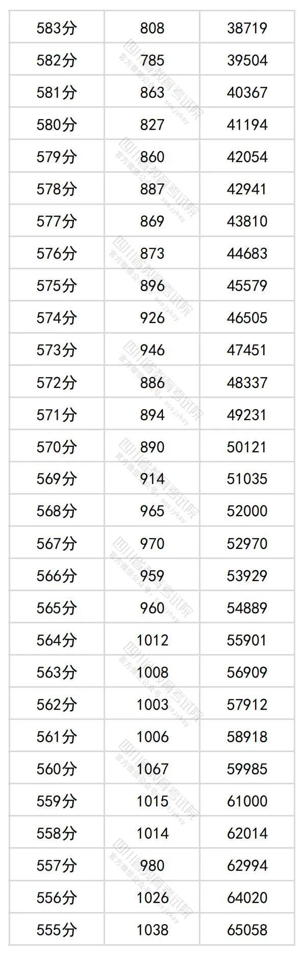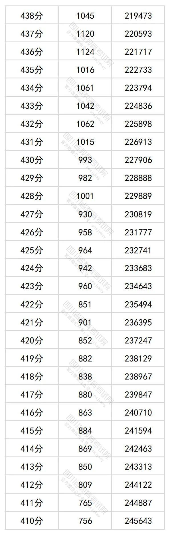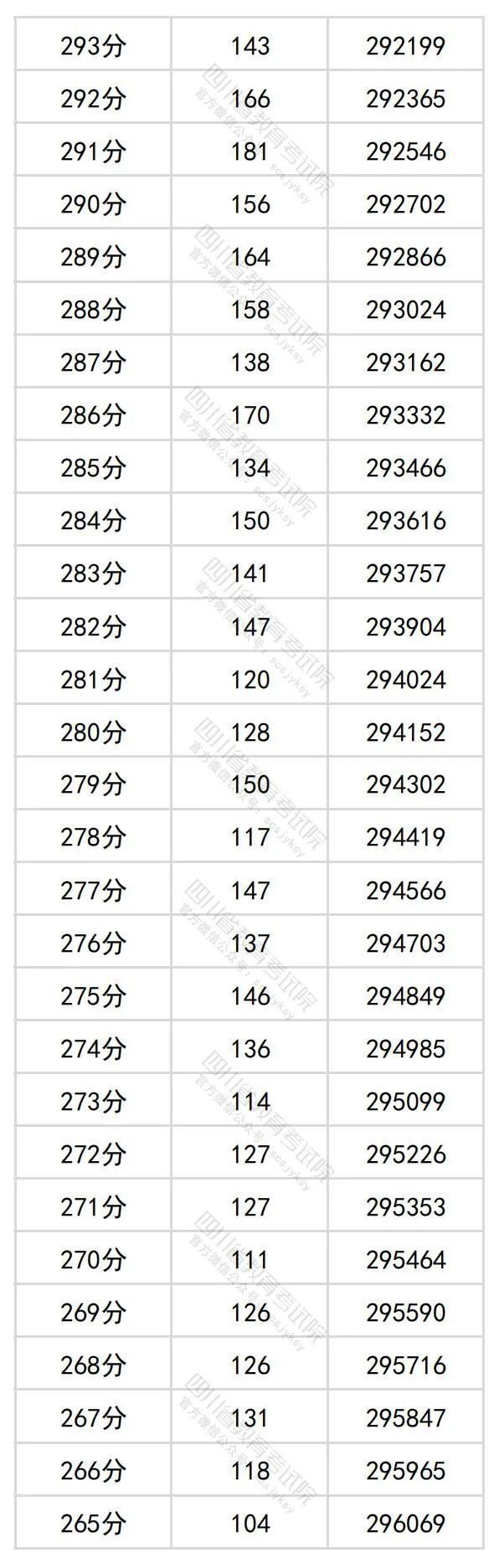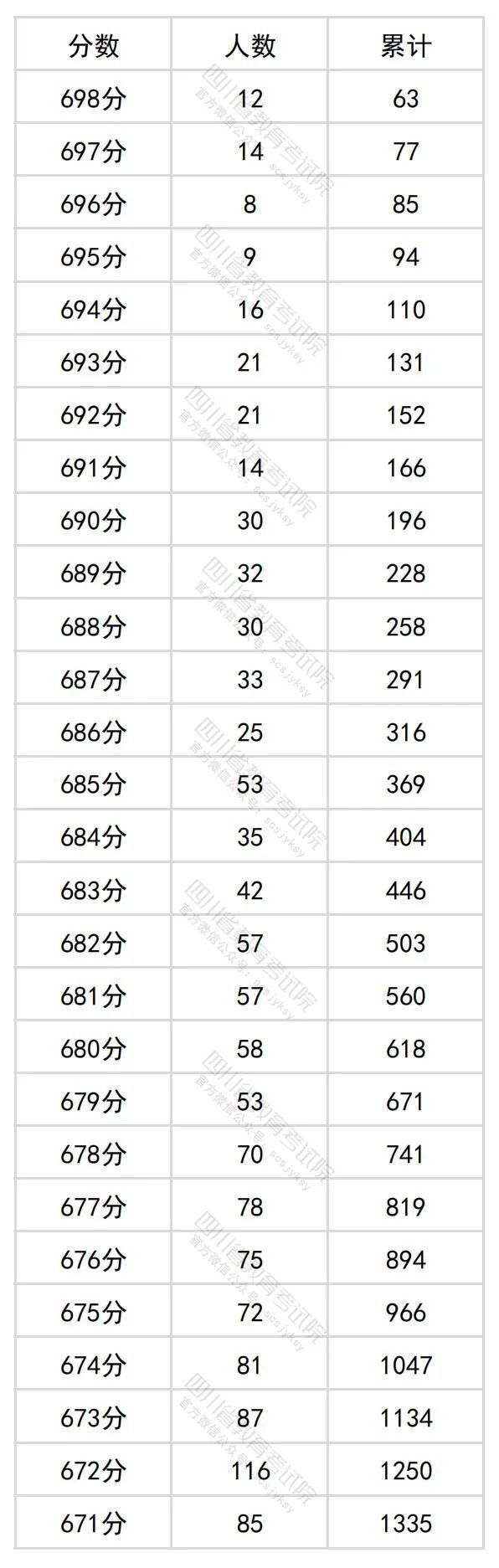 6月23日晚,四川省教育考试院公布四川省2024年普通高考理科成绩分段统计表。